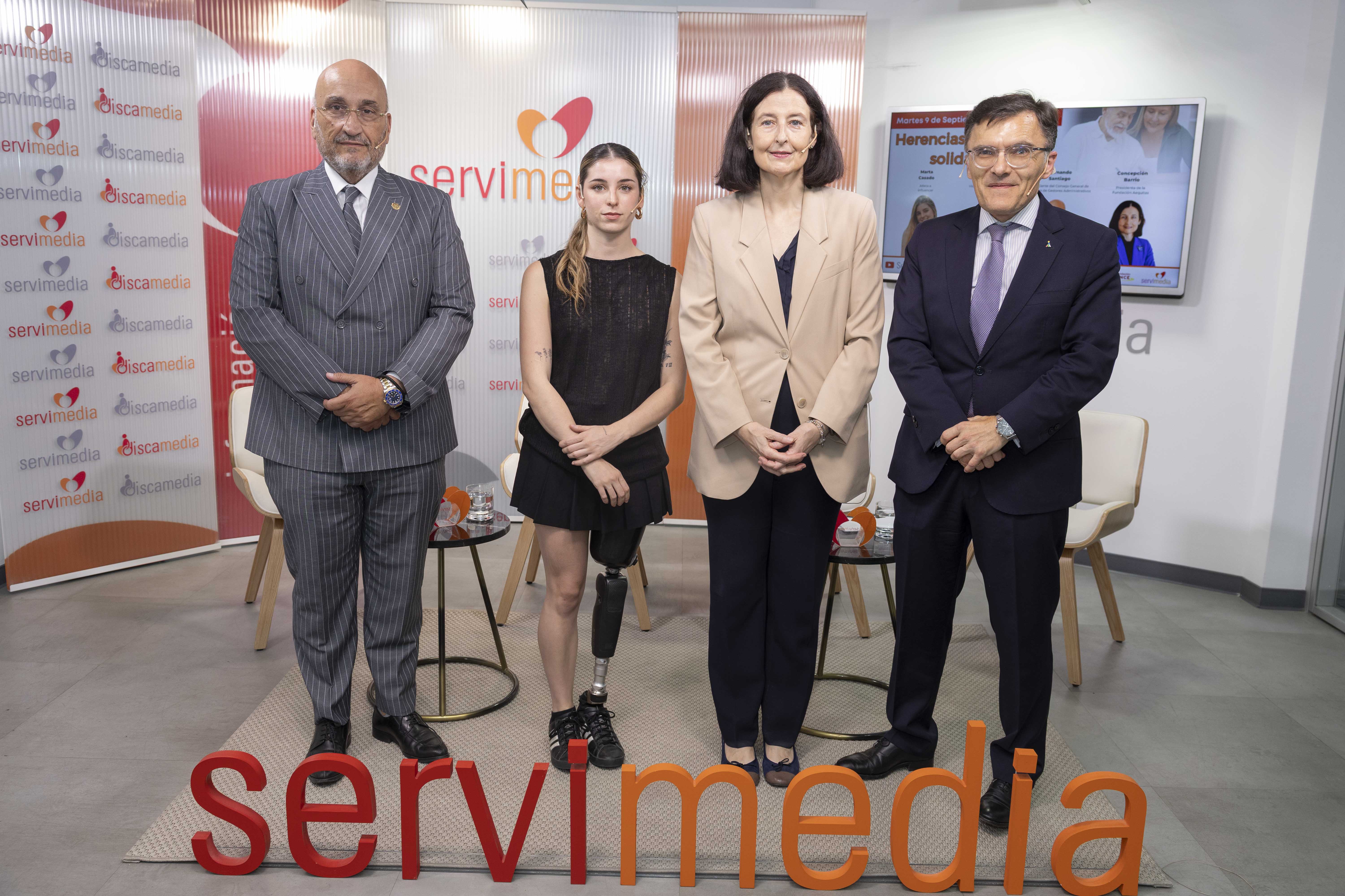 En esta ocasión, los participantes fueron: Concepción Pilar Barrio del Olmo, presidenta del Consejo General del Notariado y de la Fundación Aequitas; Alberto Durán, vicepresidente del Consejo General de la ONCE; Fernando Santiago, presidente del Consejo General de Colegios de Gestores Administrativos; y Marta Casado, atleta paralímpica e influencer.